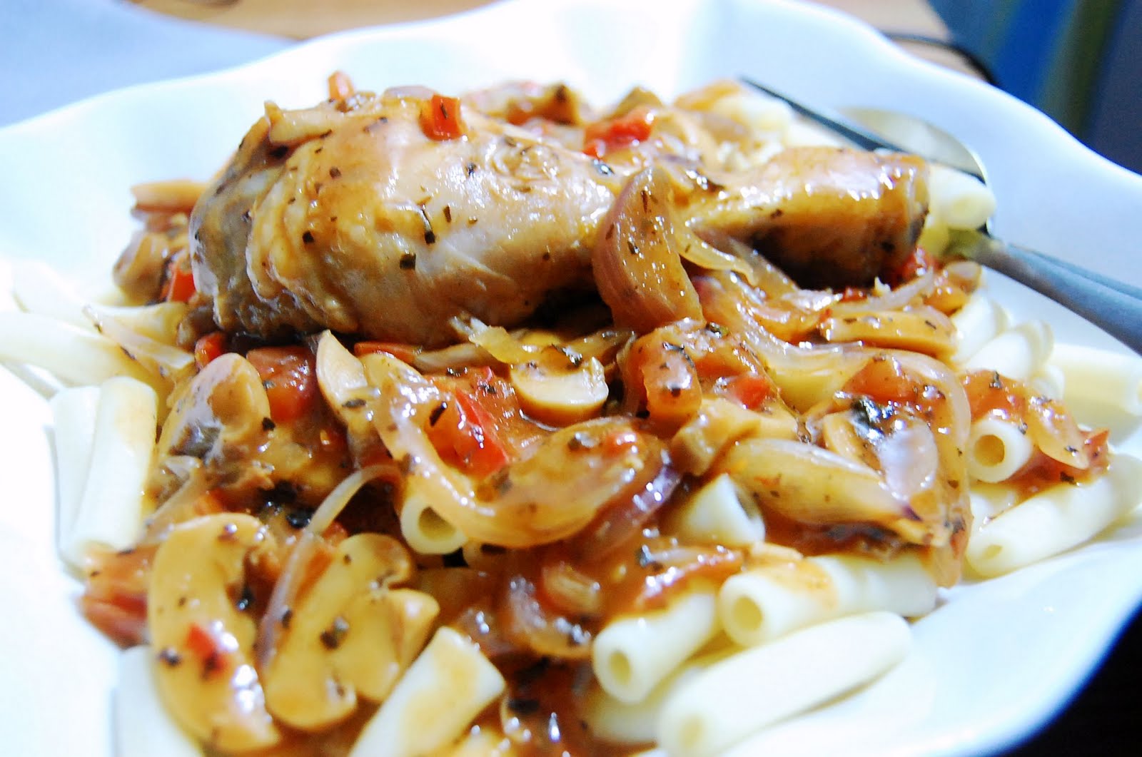 macaroni noodles with ground beef, mushrooms, bell peppers, and marinara sauce :) and garlic naan.
