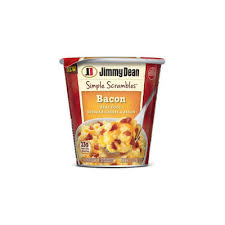 Bacon, scrambled eggs with chopped green onions, decaf with cream.