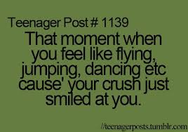 when you have a crush you can't keep from smiling it's quite the rush everything is better when you have a crush you think about them the thoughts make you blush What do you do when you have a crush do you keep it quiet do you turn to mush Post on this thread when you have a crush if it's casual or special feel free to gush |