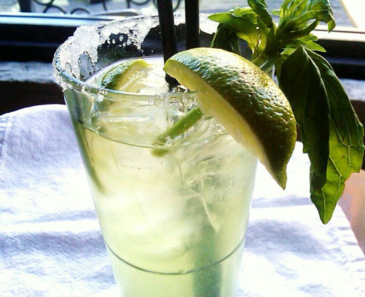 Limoncello Cocktail Ice 1/2 lemon, cut in small pieces with the rind 1 sprig fresh basil, plus extra for garnish 1-ounce grappa 2 ounces limoncello 1 1/2 ounces simple syrup Splash club soda It was very refreshing on a hot night.