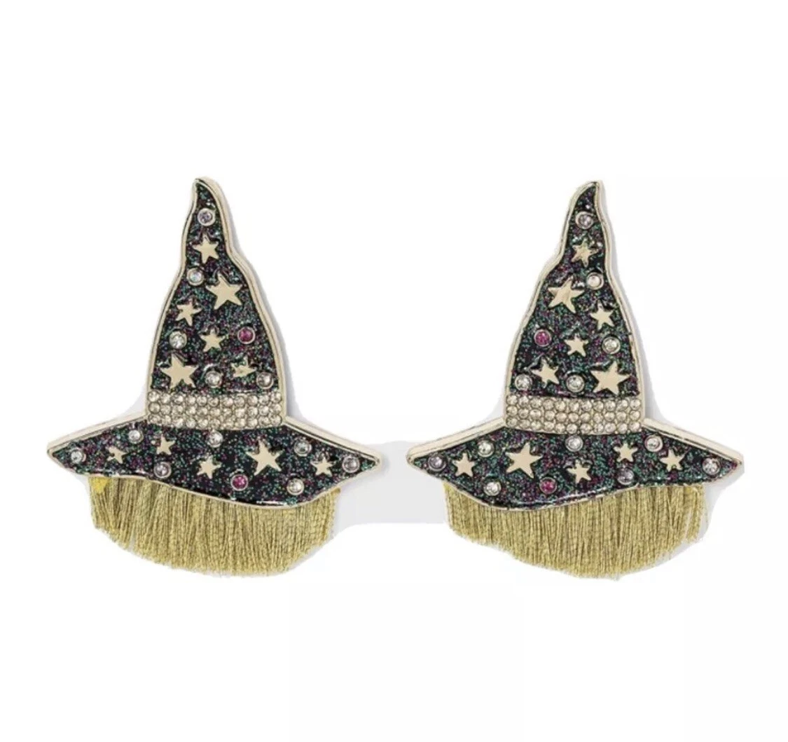 wearing...olive green scoop neck tee, denim capris, silver star fish necklace and the cutest witch earrings..